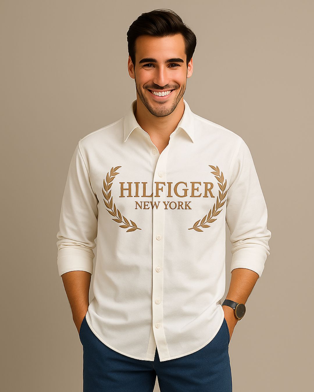 MEN'S GOLDEN CREST FULL SLEEVE WHITE SHIRT
