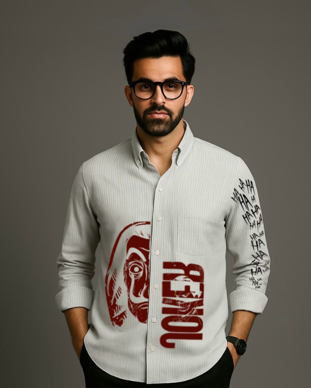 MEN'S MASKED POWER FULL SLEEVE STRIPE SHIRT